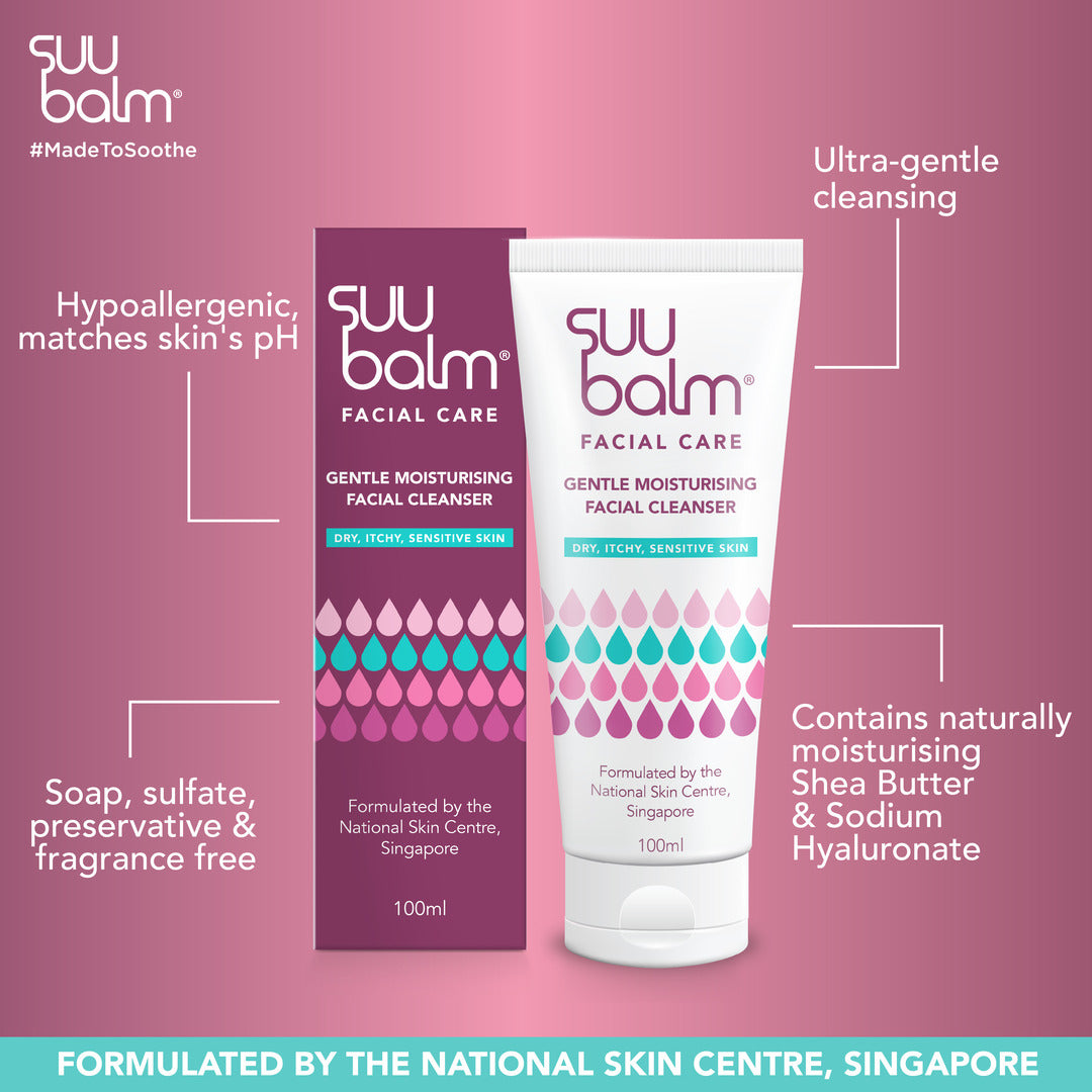 Use to gently cleanse your face. Massage a small amount onto wet skin. Rinse and pat dry. For best results, apply Suu Balm Cooling Itch Relief Facial Moisturiser after cleansing and drying. Do not use it if you are allergic to any of the ingredients.
