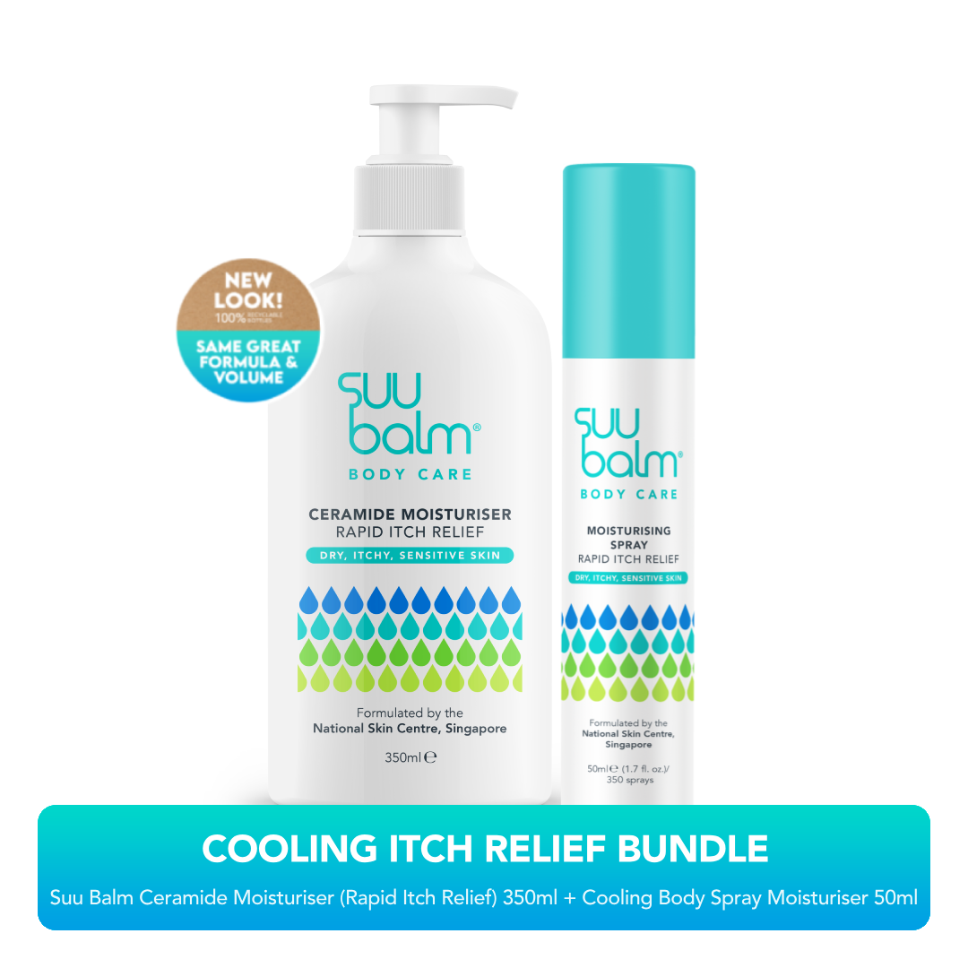 此套装旨在快速舒缓干燥、瘙痒、敏感和易患湿疹的肌肤,Suu Balm 神经酰胺保湿霜(清凉止痒)可在沐浴后缓解瘙痒,滋润肌肤!搭配清凉身体喷雾保湿霜,这款清爽的随身伴侣蕴含额外薄荷醇,可在几分钟内快速清凉止痒,并蕴含 5 种与肌肤亲和的神经酰胺,有效滋润肌肤,修复肌肤屏障。