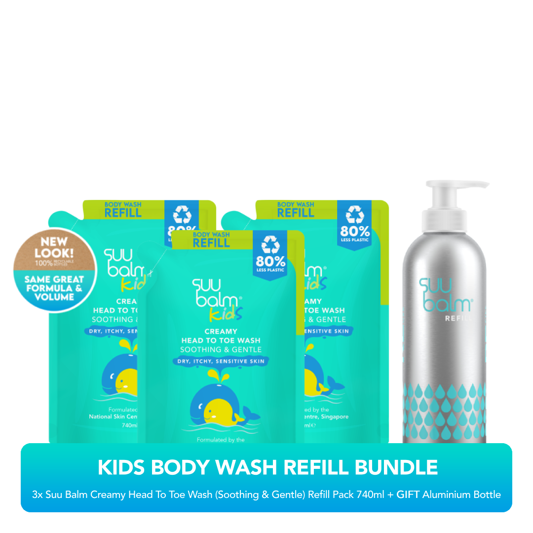Suu Balm® 速效舒敏沐浴乳 (婴幼儿配方)配方温和、舒缓,适合干性、敏感或易患湿疹皮肤的儿童和婴儿日常安全使用。