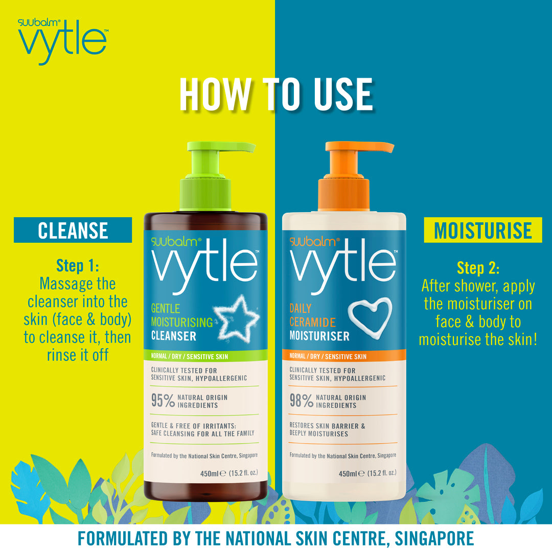 Meet your new skincare MVP, Vytle: gentle moisturising cleanser and ceramides-infused moisturiser, formulated by the National Skin Centre, Singapore!
